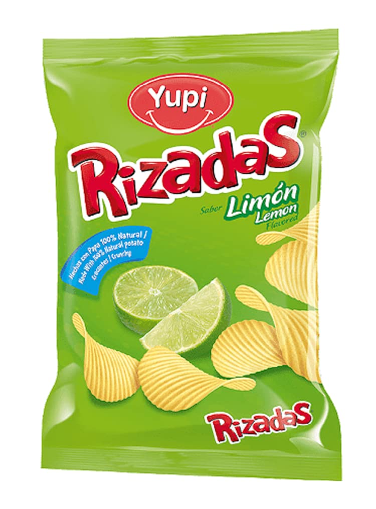 Yupi Papas Rizadas Limón da 115g, patatine increspate dal fresco e citrico gusto del limone, provenienti direttamente dalla Colombia
