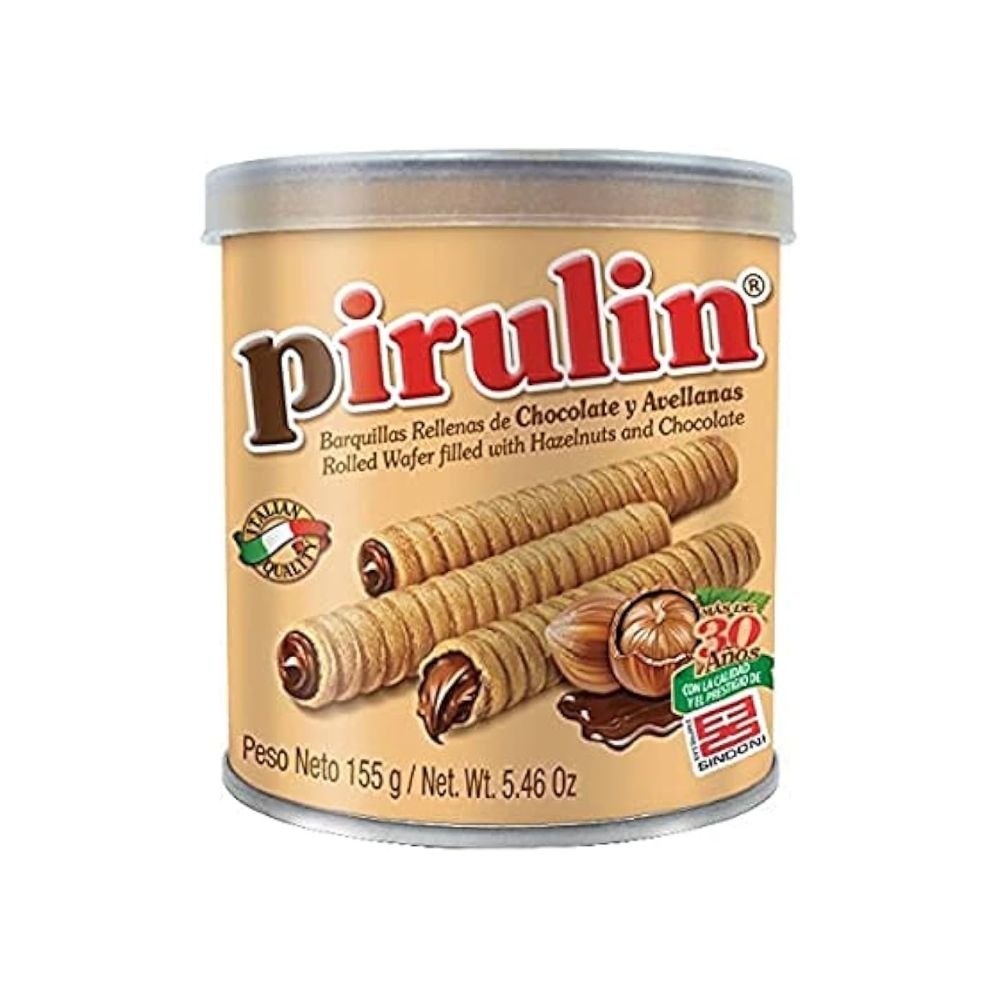 I Pirulin sono deliziosi wafer cilindrici venezuelani, croccanti all’esterno e ripieni di una morbida crema al cioccolato e nocciole. Il contrasto tra la leggerezza della cialda e la dolcezza vellutata del ripieno li rende irresistibili per grandi e piccoli.