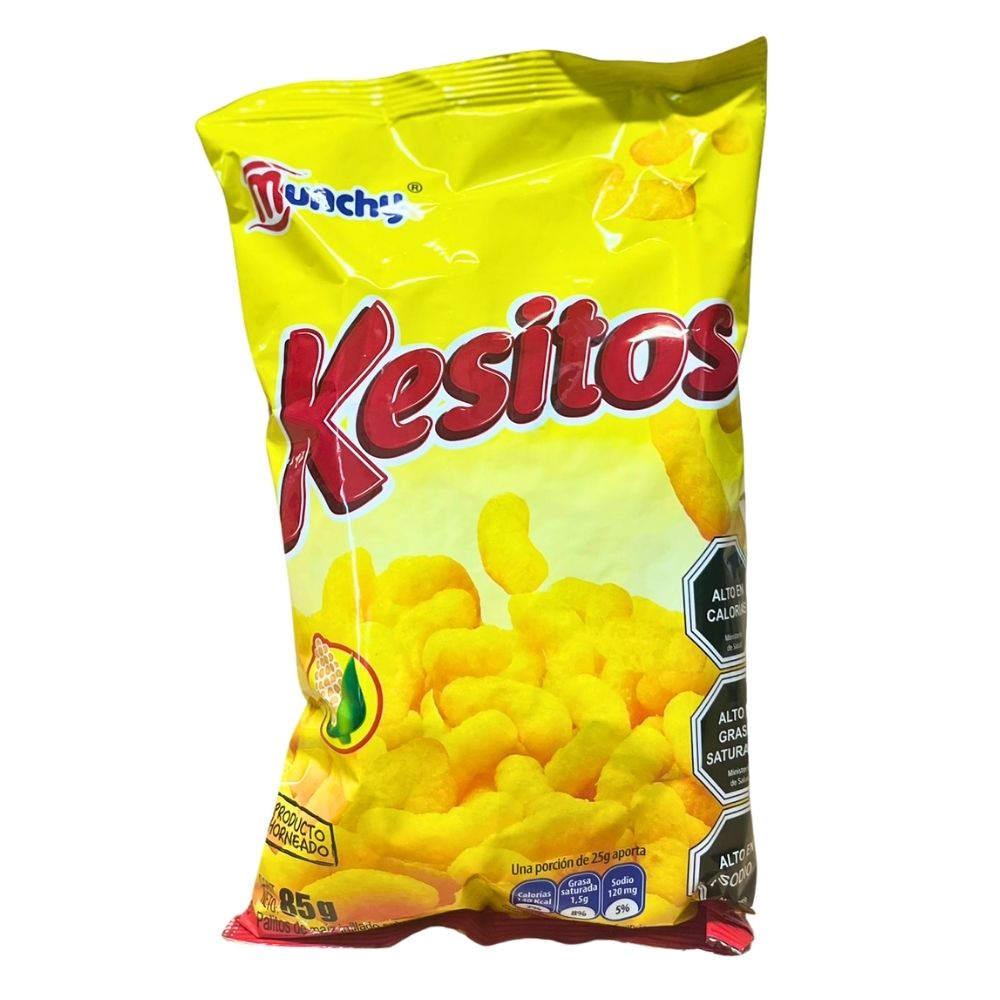 I Munchy Kesitos sono uno snack colombiano croccante a base di mais soffiato, caratterizzato da un sapore intenso e deciso di formaggio. Hanno una consistenza leggera e friabile che si scioglie piacevolmente in bocca, sprigionando un gusto ricco e saporito.