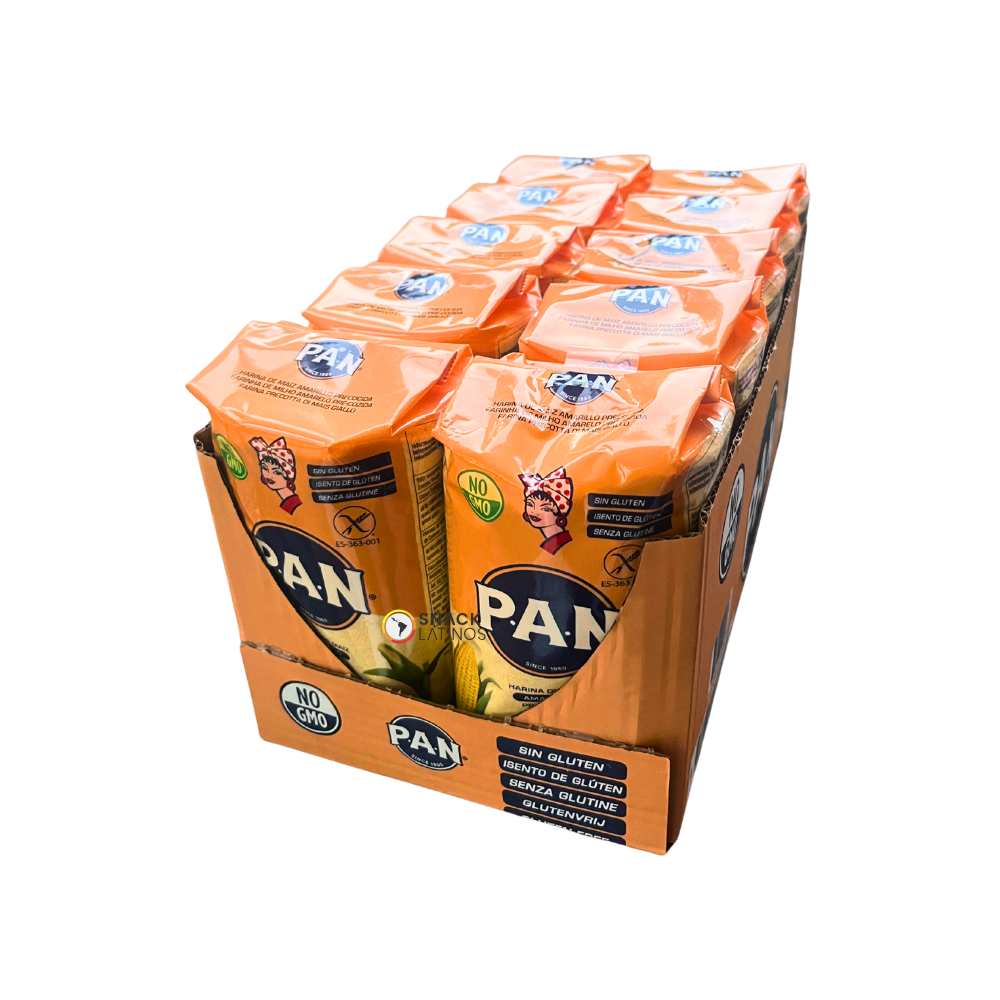 La farina PAN gialla è una farina di mais **precotta**, perfetta per preparare ricette tipiche dell’America Latina come arepas, empanadas, bollos, tamales, hallacas e molto altro. La versione da 10kg è pensata per famiglie numerose, ristoranti o per chi la utilizza spesso in cucina.