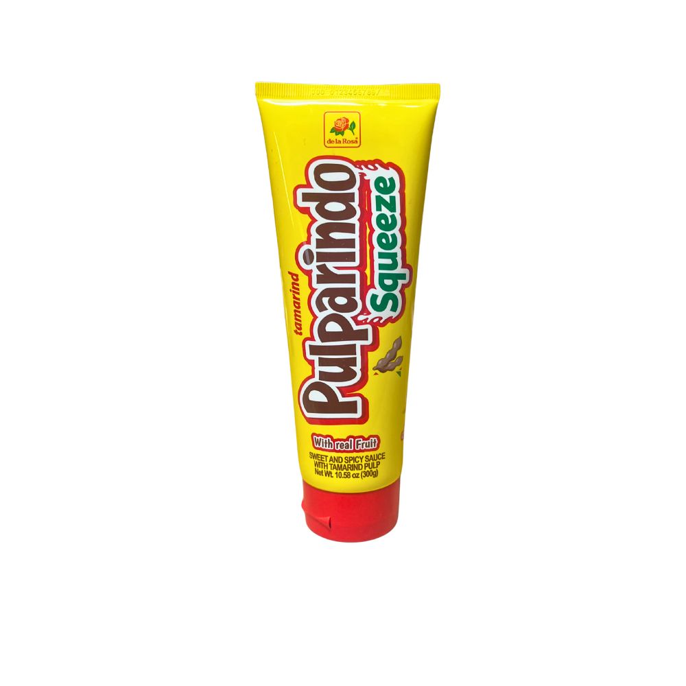 Pulparindo Squeeze è la versione cremosa e spremibile del classico tamarindo messicano De La Rosa. Una pasta dal gusto agrodolce e piccante, ottenuta da polpa di tamarindo con peperoncino e zucchero, da dosare a piacere direttamente dal tubetto.