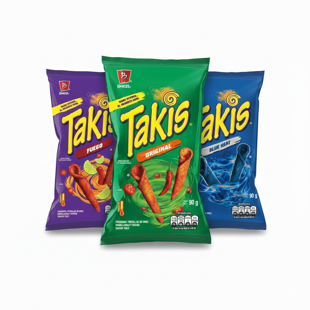 Il Takis Mix Pack riunisce tre delle varianti più iconiche: Fuego, Original e Blue Heat. Un’esplosione di sapore in un unico pack, perfetto per chi ama il piccante intenso e vuole provare gusti diversi.