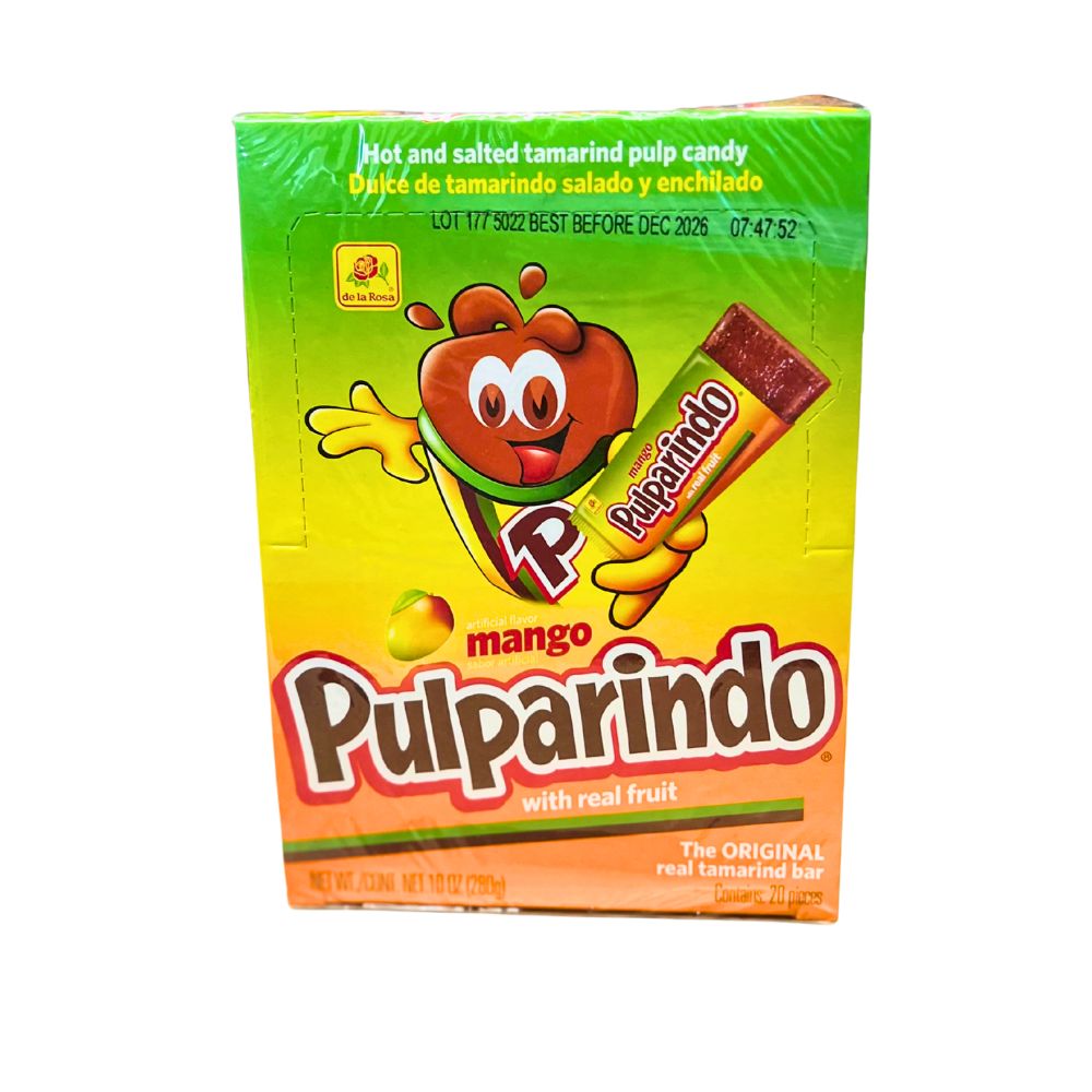 I Pulparindo Mango sono dolcetti messicani a base di tamarindo con un irresistibile gusto di mango. Un mix unico che combina dolce, acidulo e leggermente piccante, tipico degli snack tradizionali del Messico.
